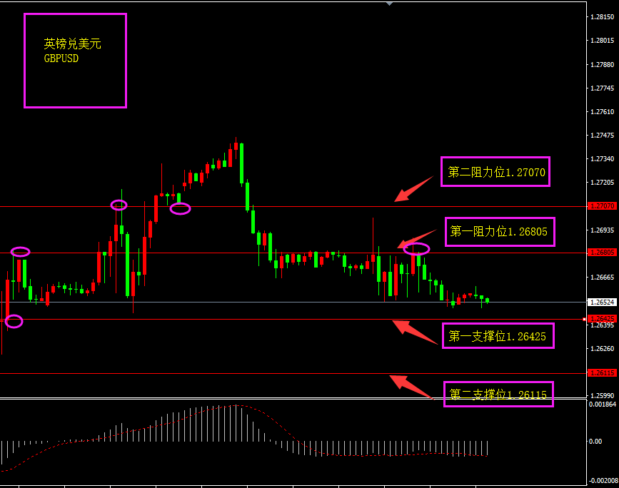 策略分析:第一支撑/第二支撑位附近看多至1.26805附近,期间出现大阴线则转为观望为主。