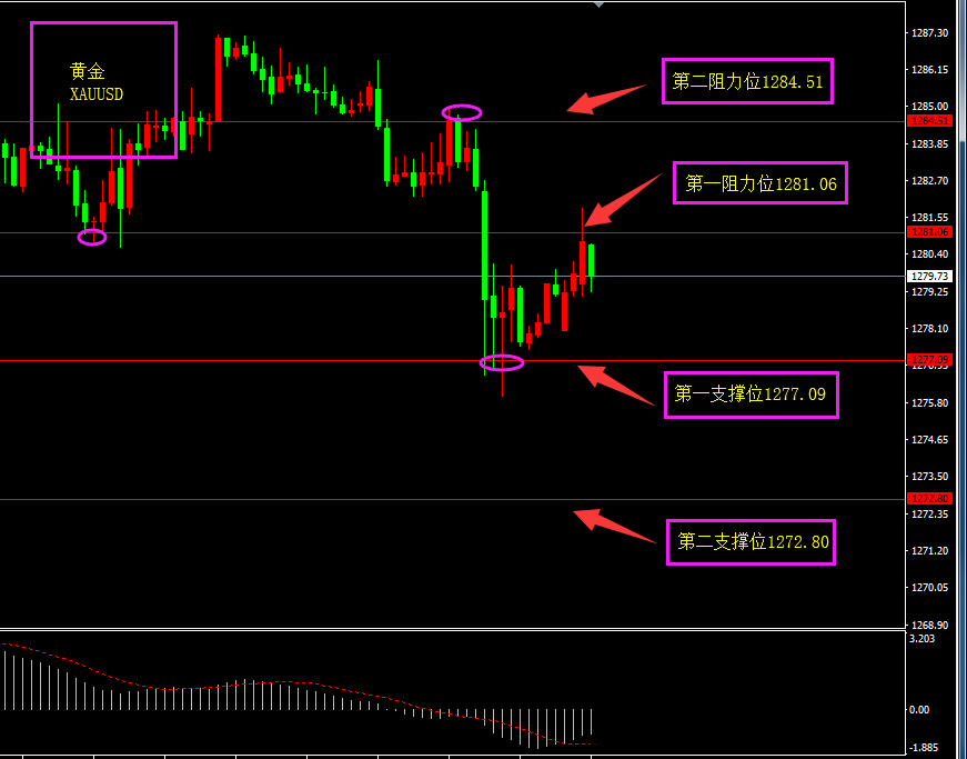 技术点评:天图实体未破大阳线开盘价,多头依旧存在,小时图实体价格未创新低,MACD小幅上移。