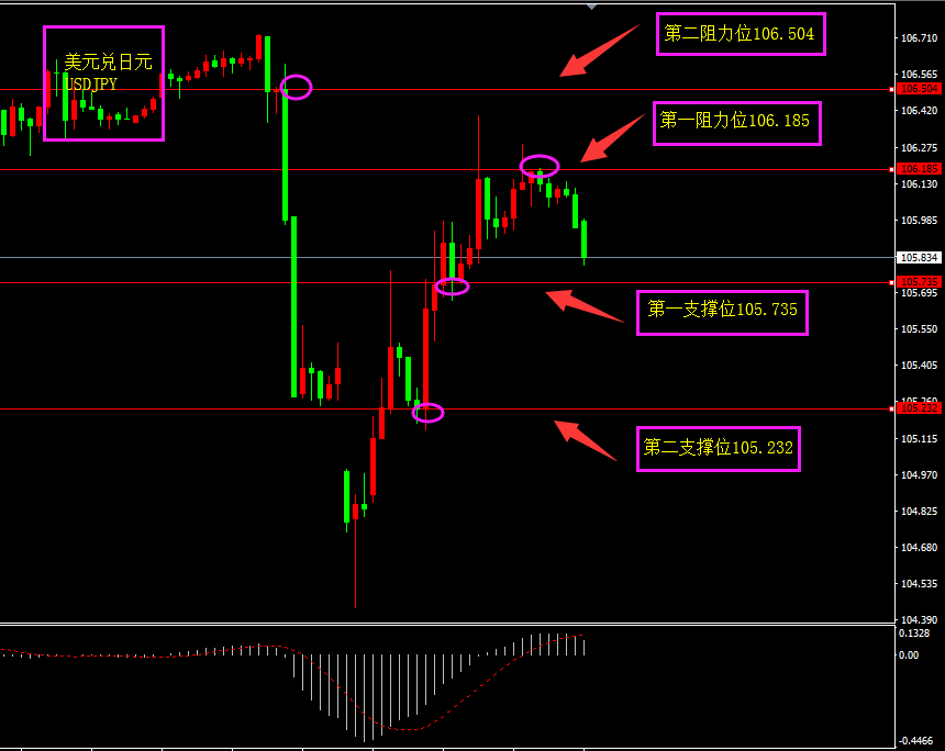 技术点评:天图欧元昨日以大阴线回调,底部MACD未创新低,且大阳线开盘价未破,看多方向将保持不变,随着美指的走弱,近期欧元将迎来上涨?小时图欧元昨日大幅回落,因美指走强所致,随着美指的回落,日内欧元或将迎来上涨,期间若有大阳线或者连续阳线拉升,效果更佳。