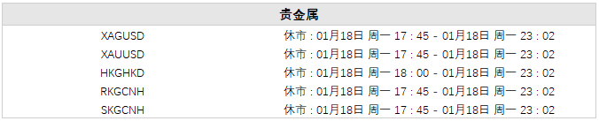 2021 年 1 月 18 日是即将到来的美国马丁路德纪念日,以下品种交易时间将发生变化(期间其他品种不会受到影响,均按正常交易时间交易)。 温馨提醒: 1. 以上所有时间均为服务器时间 (GMT+0,伦敦时间,与北京时间相差 8 小时) ; 2. 因节日到来,市场流动性稀薄,部分交易品种的点差可能会扩大,请您务必注意调整交易策 略,以规避风险; 3. 若以上信息后续发生变更,请以实际的信息为准。