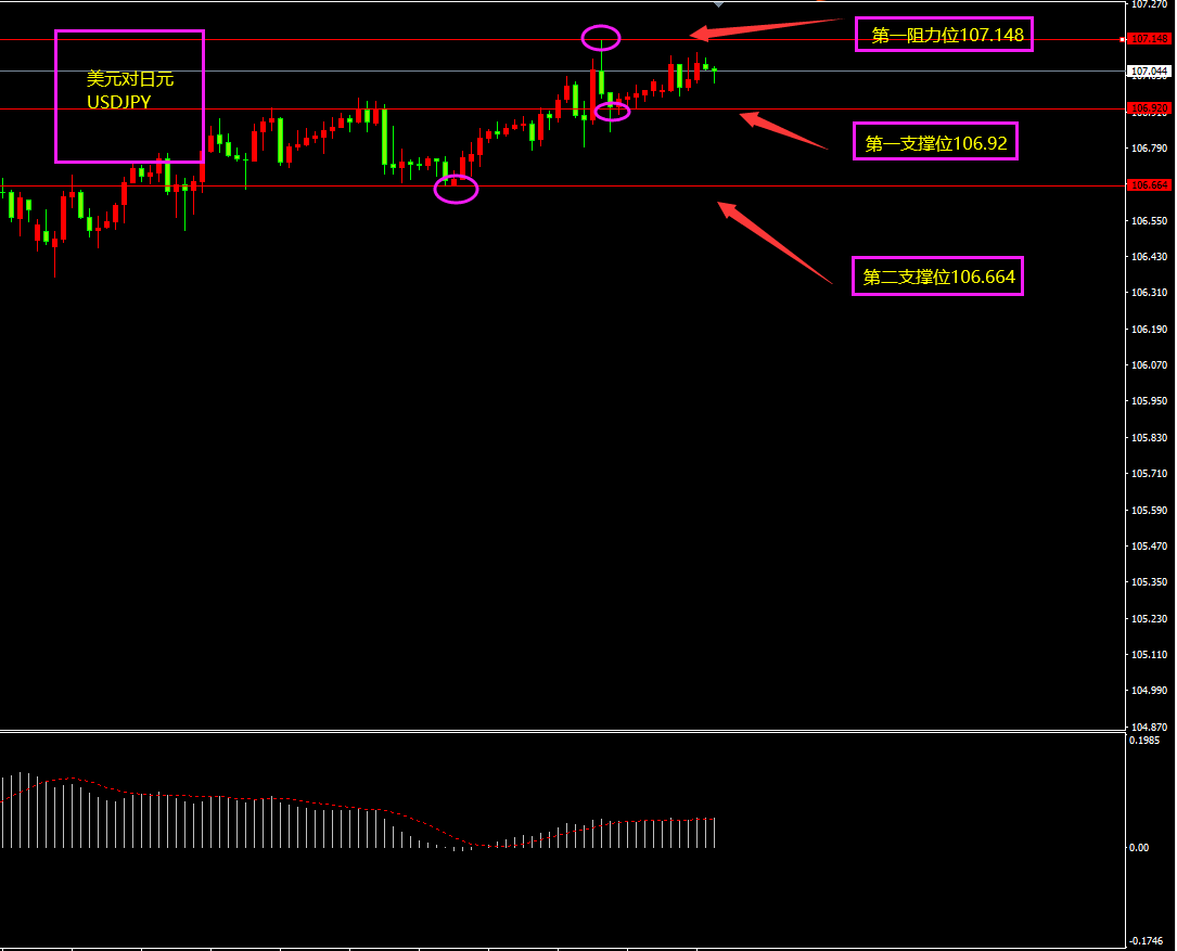 技术点评:天图欧元收小阴线,价格虽小幅下行,但下影线较长,下行力度较弱,而大方向仍然保持看涨,底部阳线支撑仍在,日内更多以逢低看多为主。小时图欧元高位虽有连续阴线回落,但MACD并未大幅下行,空头力度不强,而下方连续阳线未破,支撑仍在,日内更多以震荡以及震荡上行为主?