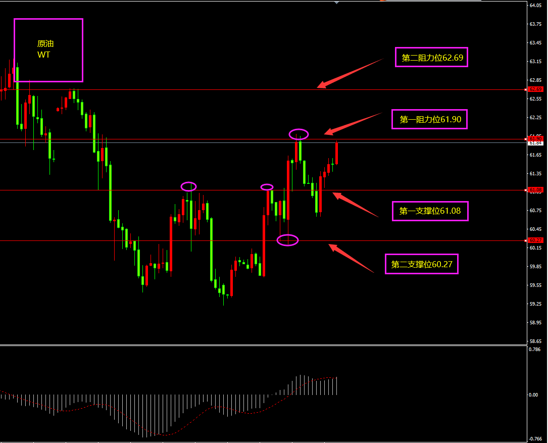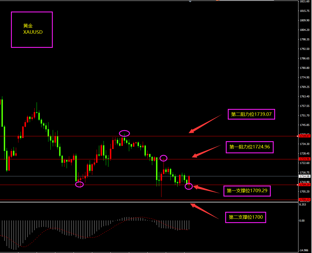策略分析:第一、二支撑位附近轻仓看多,如有大阴线跌破第二支撑位则转为观望。
