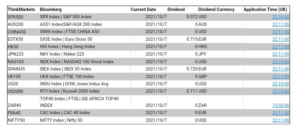 ThinkMarkets智汇平台CFD股指10月7日股息结算明细