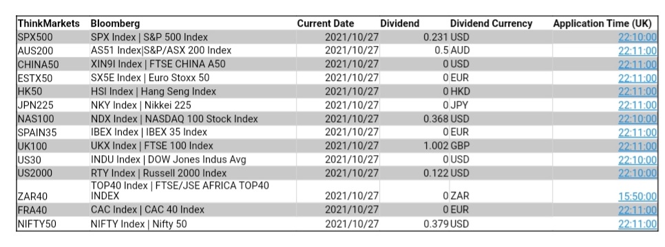 ThinkMarkets智汇平台CFD股指10月27日股息结算明细