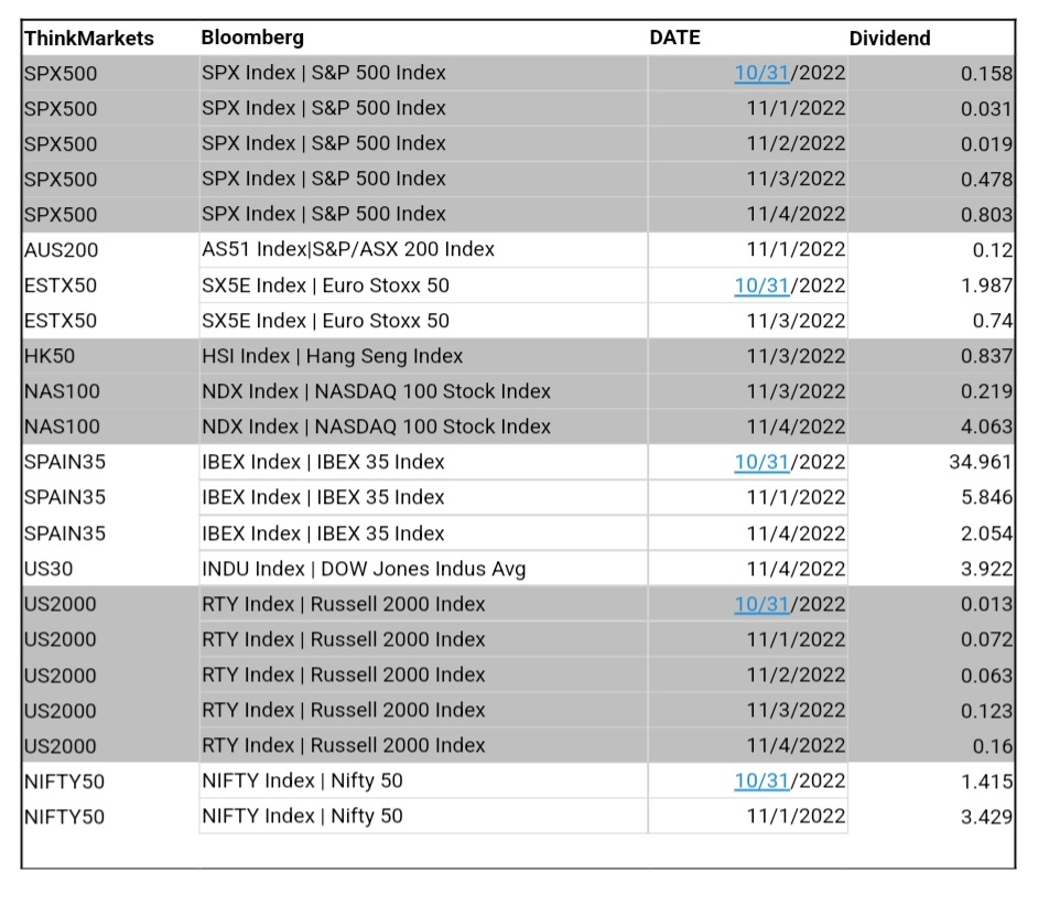 ThinkMarkets 10月31-11月4日股指股息结算明细