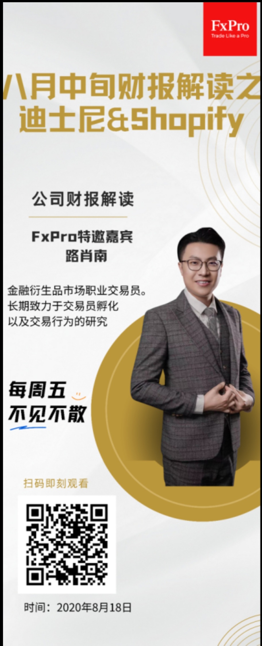 FxPro特邀嘉宾路肖南录播的八月中旬市场观察将分两期播放,本期为第一期,主要解读解读迪士尼、 Shopify的公司财报,扫码即可观看。