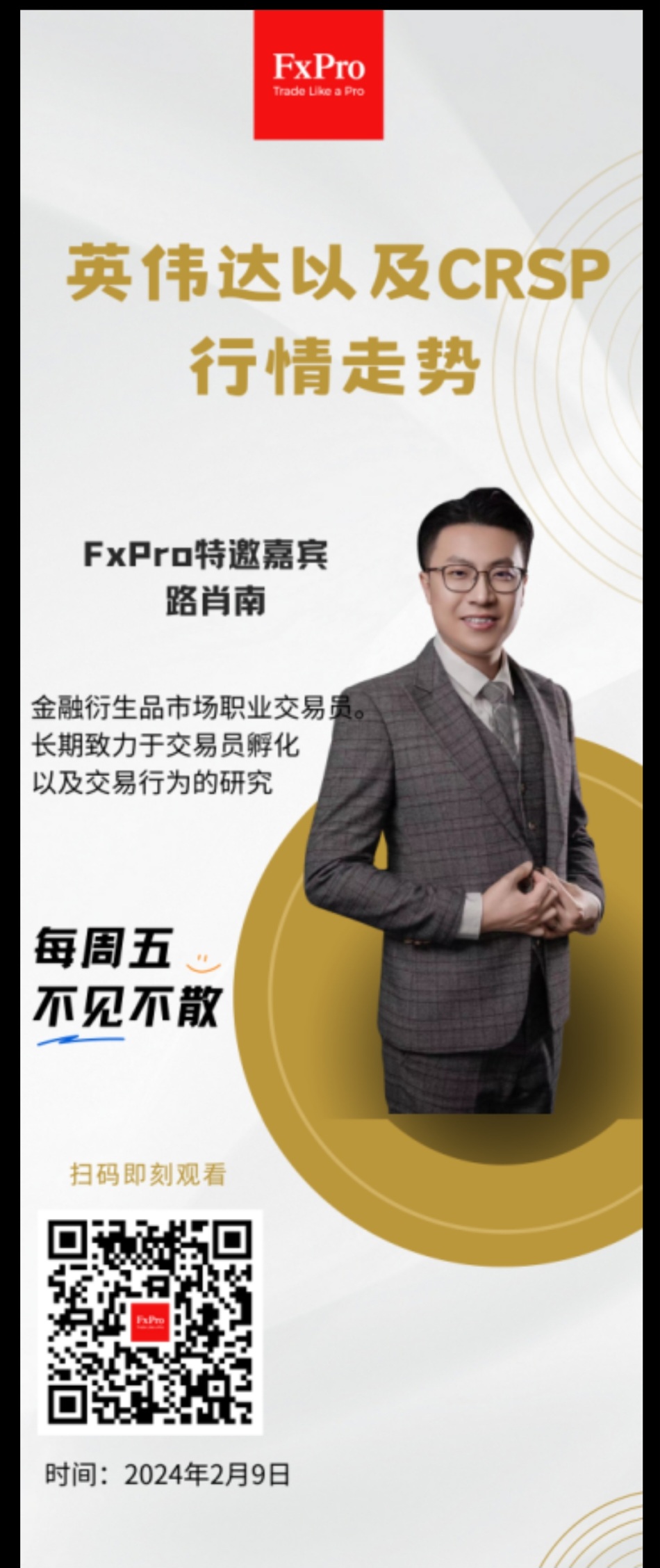 FxPro特邀嘉宾路肖南录播的2024年2月上旬市场观察将分两期播放,本期为第二期,主要分析英伟达以及CRSP行情走势,扫描以下二维码可直接观看。
